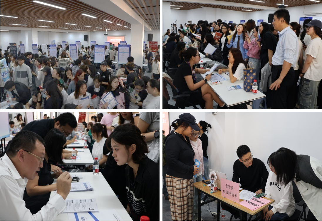 本次双选会共邀请世界500强及上市公司等用人单位35家,提供岗位80余个,岗位需求600余人,累计参与学生500余人,投递简历1500余份,现场人头攒动,气氛热烈。双选会现场滚动播放企业介绍视频,帮助企业提高宣传效果和招聘氛围;设置了“食智星AI简历诊断服务台”,以“人工智能+”赋能就业服务;与“优·show‘食’代青年”76net线路检测第五届简历大赛结合举办,企业负责人指导学生完善简历,提高求职能力。学院组织20余名专业教师到现场联系企业,对接行业形势,推介优秀毕业生到企业就业,助力人才培养与就业的有效结合。