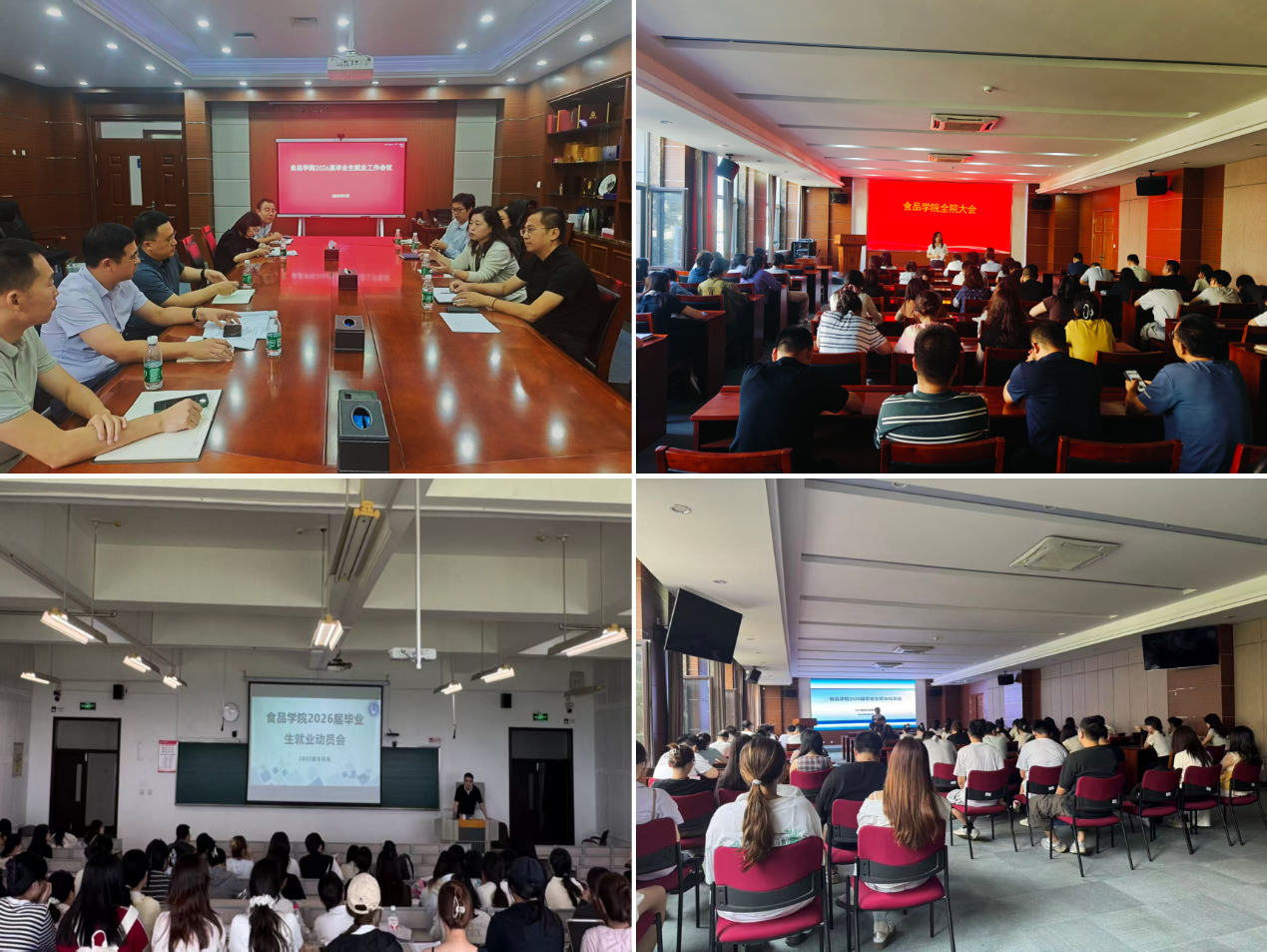 学院分别召开本科和研究生就业工作动员会,帮助毕业生认清就业形势,树立就业意识,开展毕业生就业意向摸排,按照升学、企业就业、考公考编等方面分类指导。一是做好本科生考研宣传动员,专业教师、毕业生辅导员通过班团会、走访寝室、谈心谈话等方式,为备战学生疏导压力,提供考研指导;二是选拔就业大使,广泛搜集线上食品行业招聘信息,每日在毕业生就业群推送优质就业信息,提高就业精准度;三是向毕业生宣传、解读好政策性就业岗位的相关政策,帮助毕业生知晓政策、用好政策,引导和支持更多毕业生实现就业。