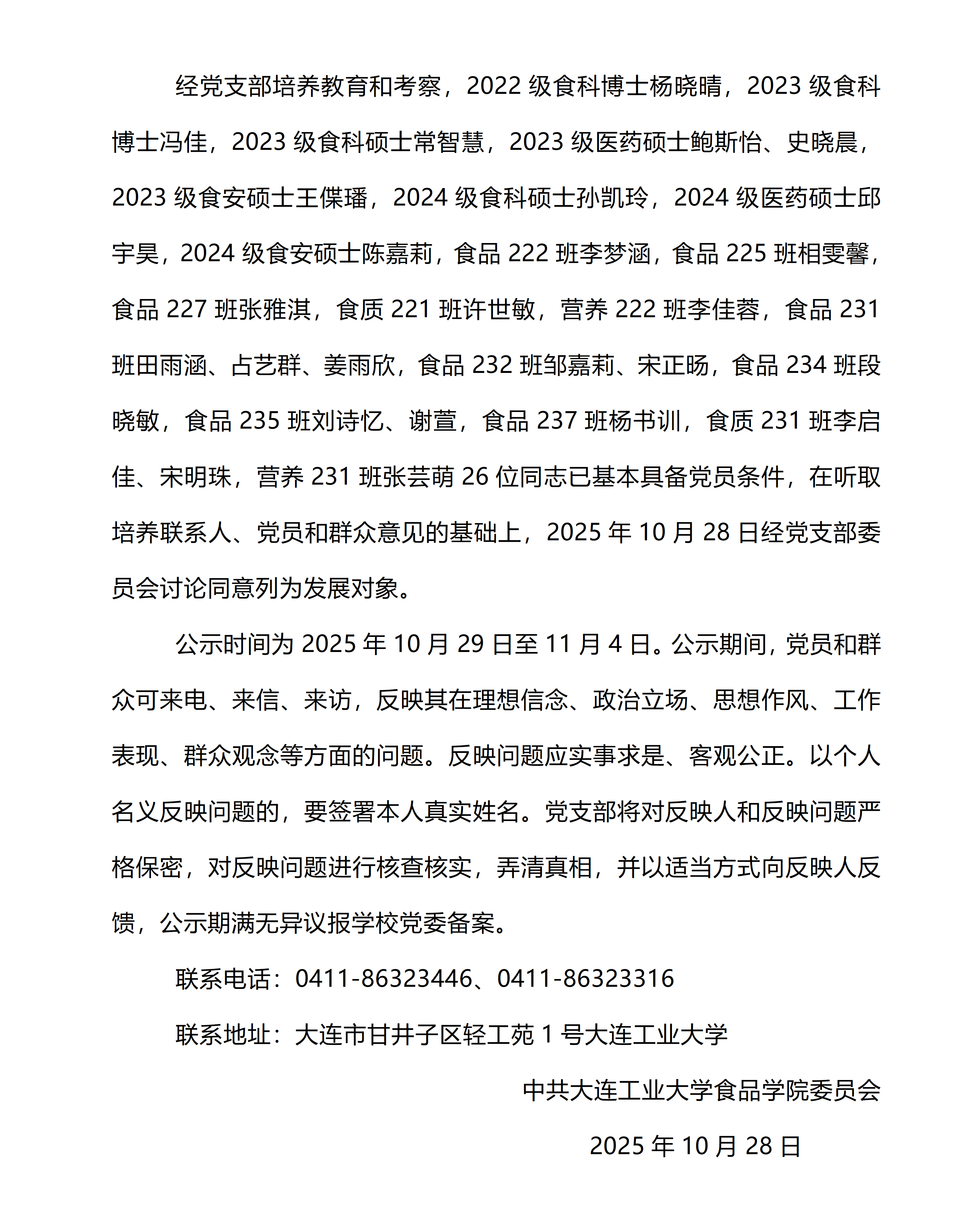 关于确定杨晓晴等26位同志为党员发展对象的公示